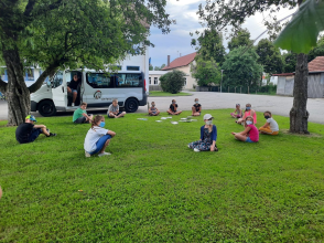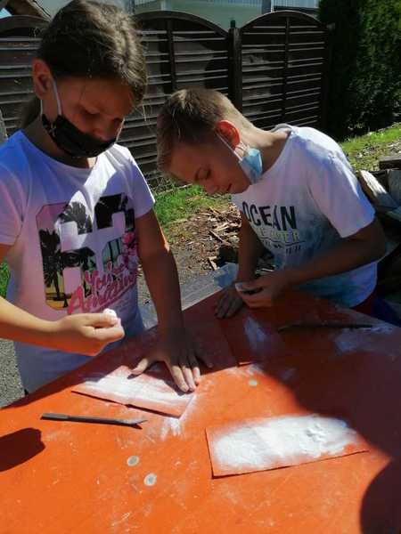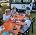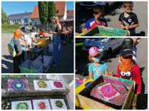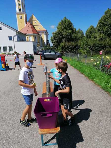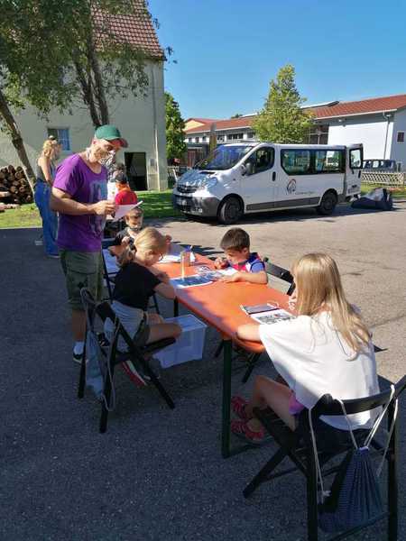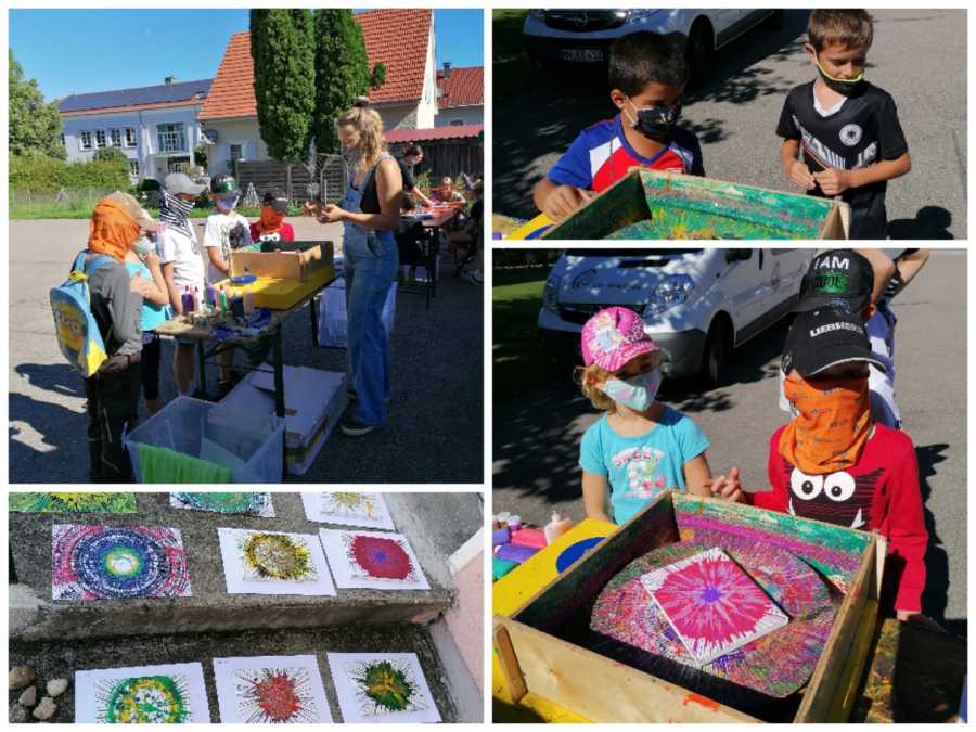 Richtig kleine Kunstwerke sind in Traunried entstanden. Die Farbschleuder war ein absolutes Highlight. Der Kreativität und Fantasie waren keine Grenzen gesetzt und es entstanden fantastische kleine Kunstwerke. Wir waren aber nicht nur kreativ, sondern auch sportlich aktiv. Bei strahlendem Sonnenschein wurde Bingo, Vier gewinnt und Softball, immer unter Beachtung der Abstandsregeln, gespielt. Achtung, fertig, los - hieß es dann beim Pedalorennen. Somit war unsere erste Tour ein voller Erfolg und die Kinder hatten in den drei Stunden jede Menge Spaß.