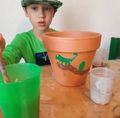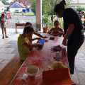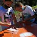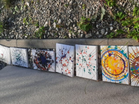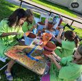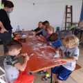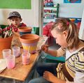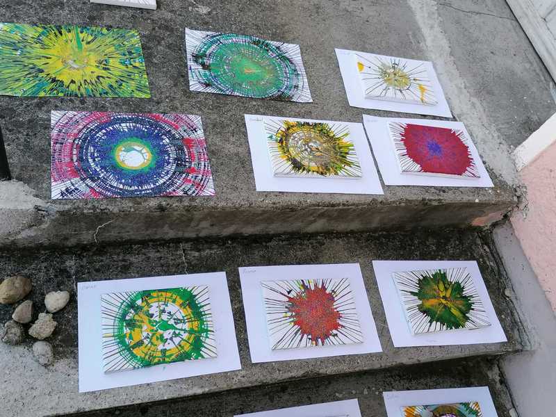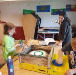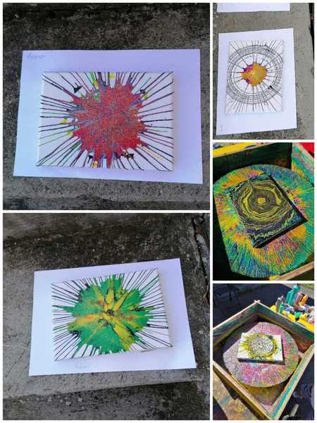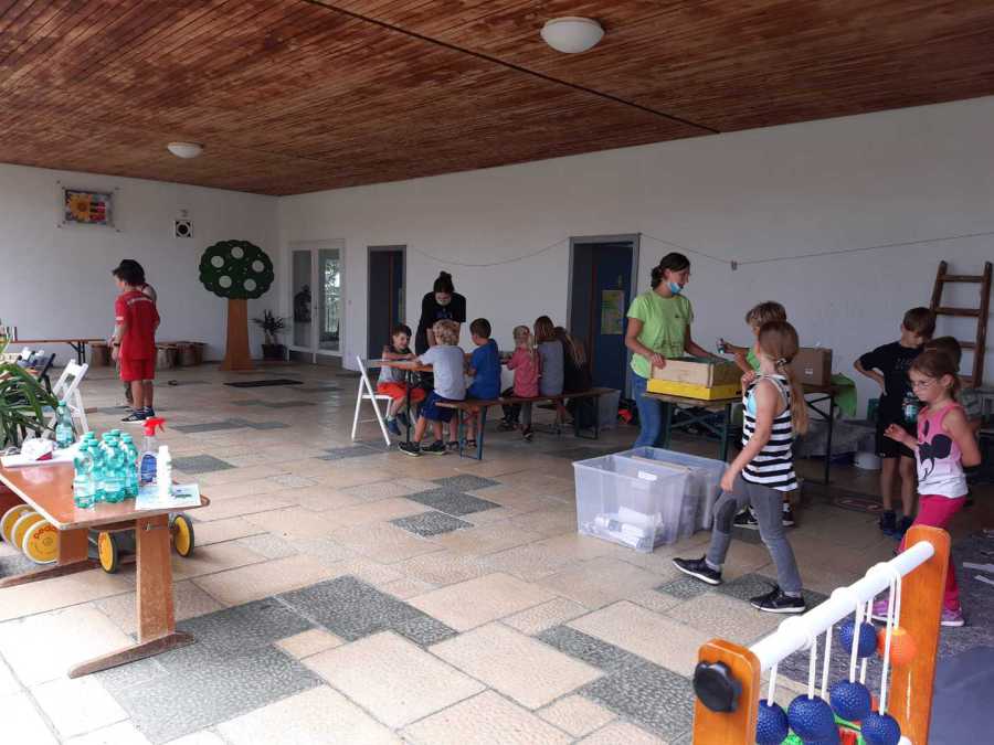 Der erste Termin ist buchstäblich ins Wasser gefallen und wir mussten in den Räumlichkeiten des Jugendzentrums ausweichen. Verschiedene Aktionen wie z.B. Blumentöpfe bemalen und gleichzeitig mit Sonnenblumensamen bepflanzen, konnten auch drinnen stattfinden. Aber das Highlight ist immer wieder der Einsatz der Farbschleuder.