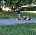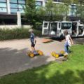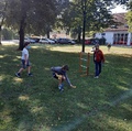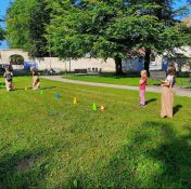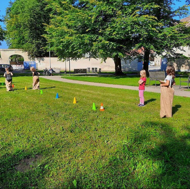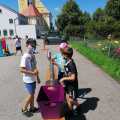 Beim zweiten Termin strahlte den ganzen Tag die Sonne. Für die Abenteurer wurde kurzerhand ein Parkour aufgebaut, wo es darum geht, so schnell wie möglich Hindernisse zu überwinden oder von A nach B zu kommen. So konnten sich die Kinder beim Sackhüpfen, Fußball dribbeln, Softballtennis, Seil hüpfen, Pedalos, Leitergolf, Frisbee werfen, Dosen werfen ausprobieren und austoben. Die Farbschleuder kam auch diesmal zum Einsatz und somit war auch der zweite Besuch ein voller Erfolg.