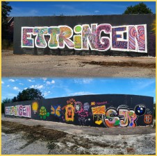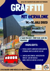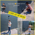 Am Freitag hieß es bei sommerlichen Temperaturen: Sprühdosen raus! Graffiti, ist mehr als nur ein graue Wand zu besprühen, das haben die Jugendlichen am Wochenende erlernen können. An Ideen mangelte es den Jugendlichen nicht und so passte jeder Strich, jeder Bogen und das Farbenspiel perfekt zusammen. Am Ende entstand mit viel Kreativität, Lust und guter Laune echte kleine Kunstwerke.
