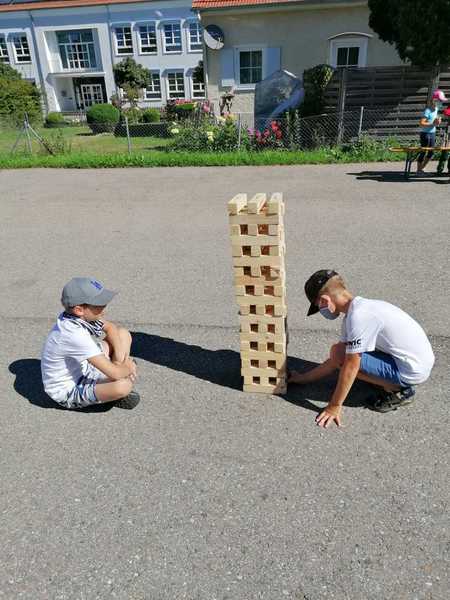 Puuuh war das warm! Bei strahlendem Sonnenschein und einem fantastischen Programm hatten wir gemeinsam mit 16 Kinder einen tollen Nachmittag. In kleinen Gruppen konnten die Kinder in nur drei Stunden ihre Kreativität, Fantasie und Geschicklichkeit austesten. Die Farbschleuder war im vollen Einsatz. In mehreren Durchgängen wurden bunte Bilder mit Glitzer oder ohne Glitzer kreiert, woraus viele coole Unikate entstanden. Spiel & Spaß kam nicht zu kurz, besonders der Wackelturm brachte viel Freude, aber auch das taktische Vorgehen beim „Vier gewinnt“ war eine Herausforderung. Erholung gab´s im Schatten, denn der Sitzsack war eine gute Gelegenheit sich auszuruhen und wer wollte, konnte nebenbei Scoobidoo Bänder flechten.
