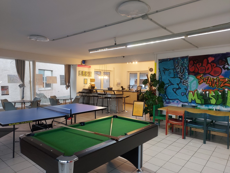 Nach dem Hochwasser im Juni 2024 ist unser JuZe in neue Räumlichkeiten umgezogen, sodass die Jugendlichen weiterhin die Möglichkeit haben ihre Freizeit individuell zu gestalten. Ob beim Billard eine ruhige Kugel schieben oder ein Kicker Match austragen, mit Freunden an der Playstation zocken oder einfach nur Musik hören, für jeden ist was dabei.