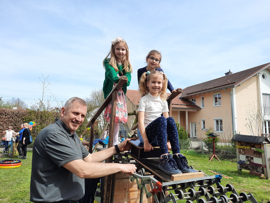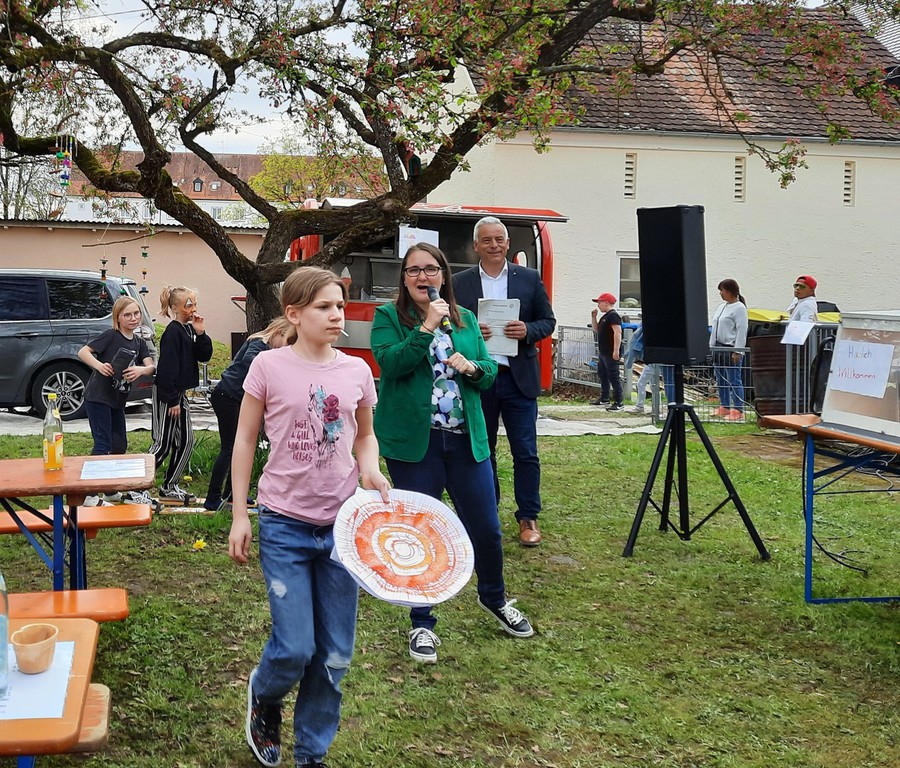 Bei herrlichem Frühlingswetter fand am Samstag, den 22.04.2023 das Fest zum 10-jährigen Bestehen des Kinderparlaments statt. Zuerst begrüßte Bürgermeister Wolfgang Schmidt die Anwesenden und dankte insbesondere dem Altbürgermeister Werner Birkle, auf dessen Initiative das Kinderparlament gegründet wurde. Anschließend betonte auch Kathrin Specht, die Vorsitzende des Kreisjugendrings Unterallgäu, die Wichtigkeit der Kinderparlamente und überreichte ein Geschenk. Yvonne Jeckle ließ einige Programmpunkte der 10 Jahre Revue passieren. Unzählige Kinder tummelten sich an den verschiedenen Spielstationen, bei der Farbschleuder und dem Herstellen von Buttons. Großen Anklang fand auch die Rollenrutsche. Die Gewinner des KIPA-Quizes Ben Dreher und Lea und Noah Zeller erhielten mit jeweils voller Punktzahl einen Kinogutschein. Im Keller wurde eine Fotoshow über die vergangenen 10 Jahre präsentiert. Auch an der Eisbar von Frau Rosak und beim Waffel- und Kuchenverkauf war der Andrang groß.