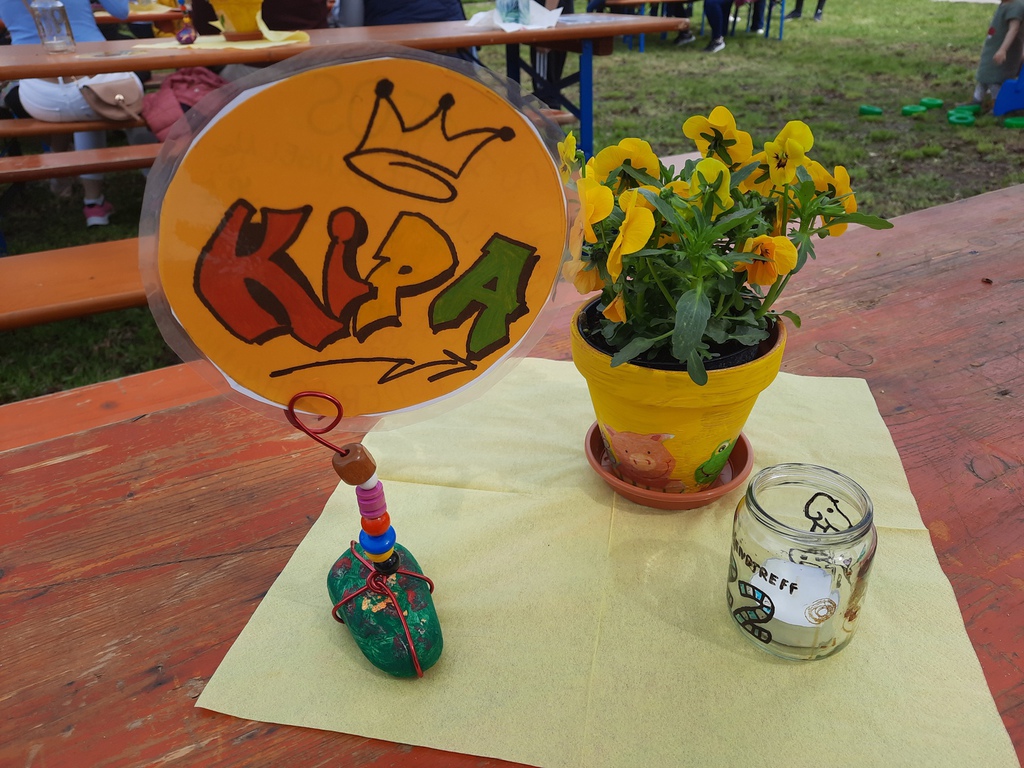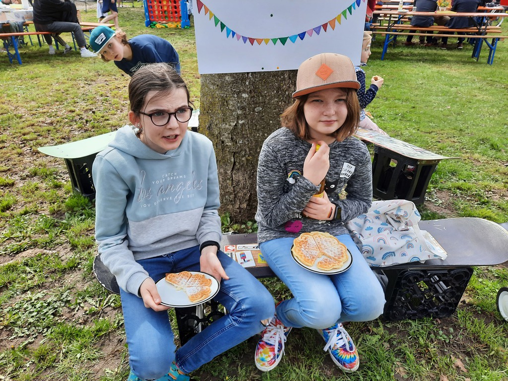 Ganz herzlich möchte ich mich an dieser Stelle bedanken: beim Bürgermeister Wolfgang Schmidt und Christina Schneider von der Gemeinde und beim Bauhof; bei allen Eltern und Kindern, die Kuchen oder Muffins gebacken haben; bei allen Helfern und Helferinnen an den Spielstationen, der Rollenrutsche, dem Waffel- und Kuchen-verkauf und dem Team von „Juze on Tour“; danke an Alicia und Amelie fürs Kinder-schminken und an alle Jugendlichen vom Jugendtreff, die Getränke verkauft haben. Danke an alle im Hintergrund beim Spülen oder beim Abbau tatkräftig mitangepackt haben. Und danke an alle die gekommen sind und so das Fest zu einem unvergesslichen Ereignis gemacht haben!