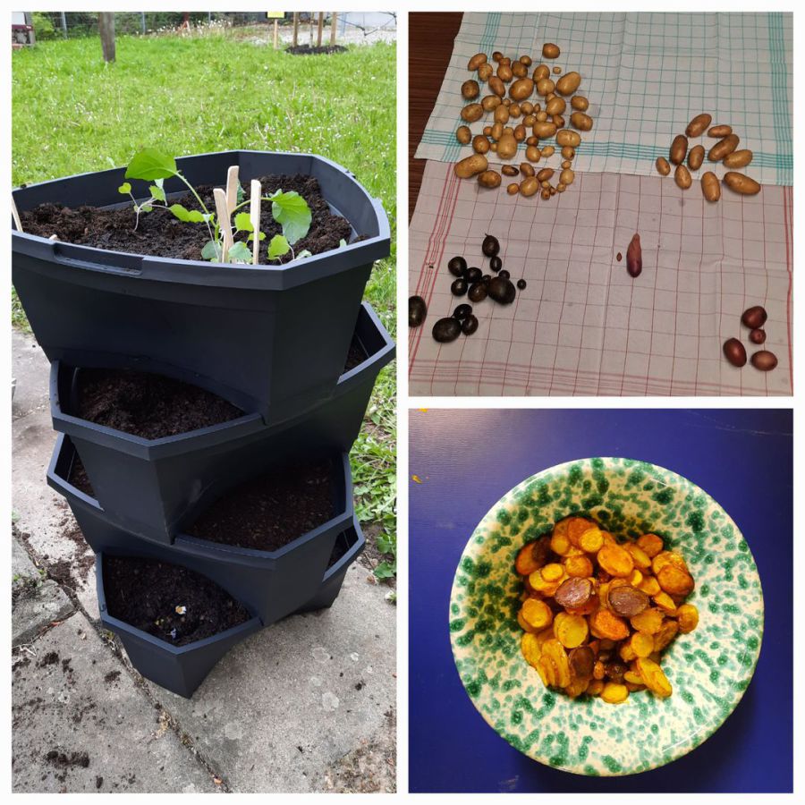 Beim Wettbewerb „Kartoffelaktion 2024“ hatte das Kinderparlament fünf verschiedene alte Kartoffelsorten gewonnen. Im Mai ging es dann ans Pflanzen und die „Blaue Anneliese“, das „Bamberger Hörnchen“, die „Rote Emmalie“, „Bintje“ und „Rosara“ wurden von der Umweltgruppe in einen Kartoffelturm gepflanzt. Im September konnte jetzt geerntet werden und die insgesamt 85 kleinen Kartoffeln wurden zu Chips verarbeitet.