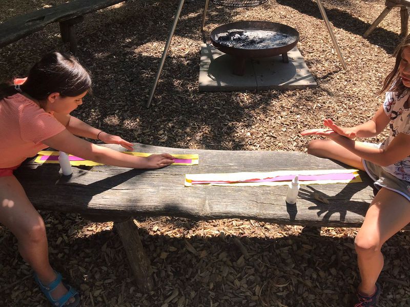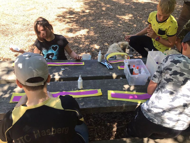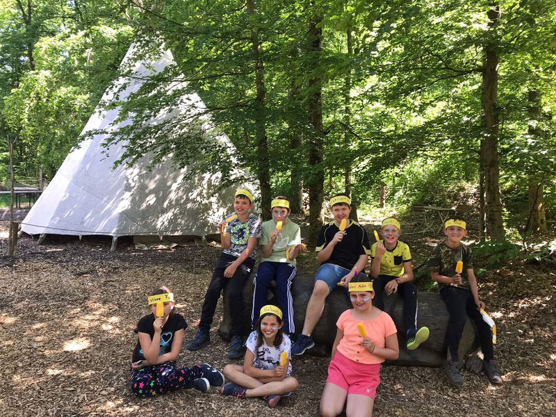 Camp zurück, machten wir mit einem erfrischenden Wassereis eine kleine Pause. Eine wichtige Sache zum gesammten Outfit fehlte noch, Pfeil und Bogen. Mit Feilen, Ästen vom Haselbaum und Bogenschnüren