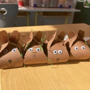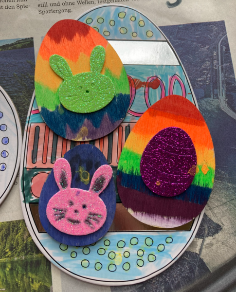 Gemeinsam wurden Türkränze gebastelt, bunte Fensteranhänger gestaltet und Eier aus verschiedenen Materialien verziert. Besonders spannend war das Diamond Painting, bei dem funkelnde Anhänger entstanden, die zum Staunen einluden. Ein Highlight war das Basteln von Osternestern in Hasenform: Die Kinder waren begeistert, als sie entdeckten, dass der Osterhase dort eine kleine Überraschung versteckt hatte! Am letzten Tag wurde es noch leckerer: Jeder durfte einen Hefezopf backen, auf den alle sich schon beim Anblick freuten. Es war eine wundervolle Betreuung voller Spaß, Kreativität und Freundschaften, und wir freuen uns schon jetzt auf weitere spannende Ferienaktionen!