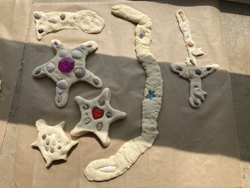 Die Pfingstferien in Bad Grönenbach und Woringen standen ganz im Zeichen des Themas „Meer“. Gemeinsam haben wir Meerestiere aus Salzteig gestaltet, bunte Quallen aus Papptellern gebastelt und Meeresholztiere bemalt. Aus Eierkartons entstanden Schildkröten und Aquarien, und ein großes Wandbild einer Unterwasserwelt ließ uns wie im Sealife fühlen – inklusive eines riesigen Oktopus! Bei den heißen Temperaturen konnten wir unsere Badesachen mitbringen und täglich Wasserschlachten genießen. Es war eine unvergessliche Woche voller Spaß, Kreativität und Meeresabenteuer!